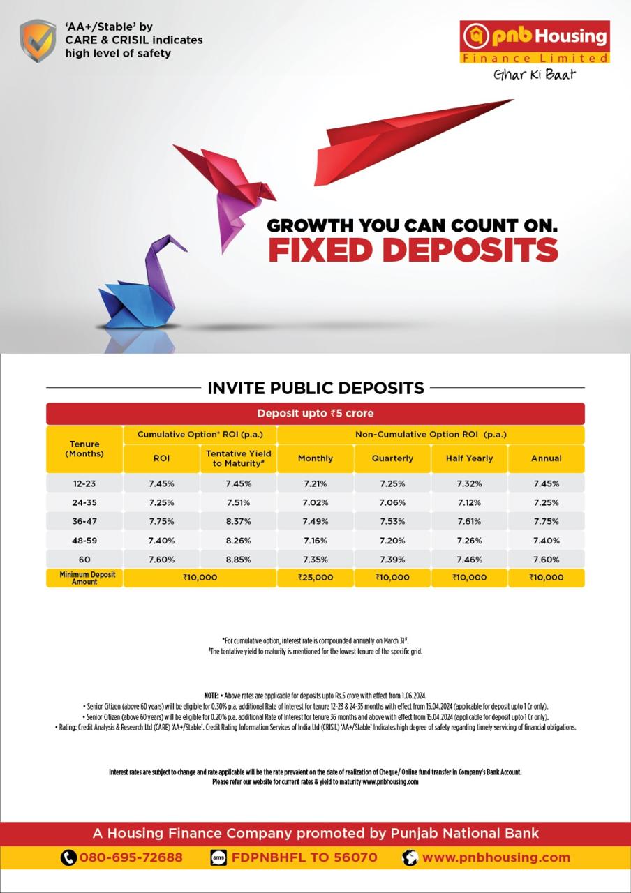 Fixed deposits offer flexible tenures, ranging from a few months to several years, to suit investors' financial goals.